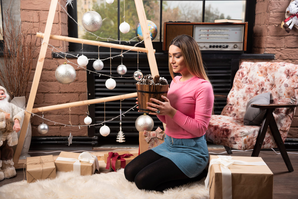 - Crengile de brad și conurile de pin: Poți folosi crengi de brad pentru a decora ușile, mesele sau mesele de cafea. Conurile de pin, aranjamentele de brad și ramurile uscate sunt ideale pentru a crea o atmosferă de sărbătoare.