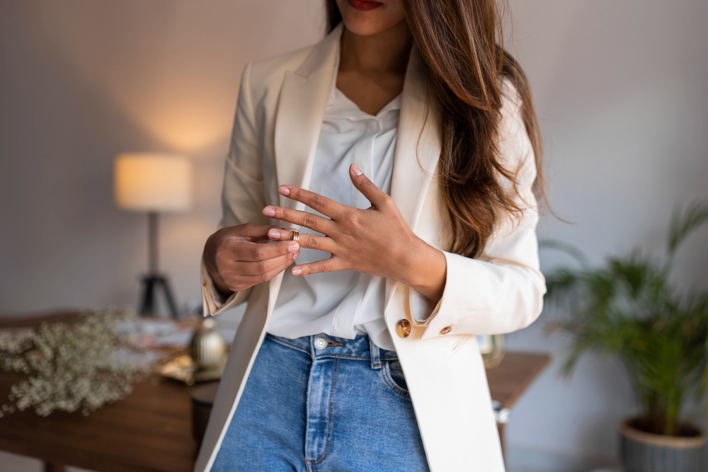 Accesoriile trebuie să fie discrete, dar de impact. Un ceas elegant, o pereche de cercei mici, o geantă structurată sau o curea de calitate sunt suficiente pentru a completa ținuta. Evită accesoriile prea stridente, care pot diminua profesionalismul look-ului. În schimb, poți miza pe bijuterii minimaliste care adaugă un aer sofisticat.